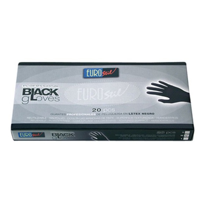 • Gants noirs en latex pour protéger les mains des tâches et des produits chimiques. Boite de 20 gants.