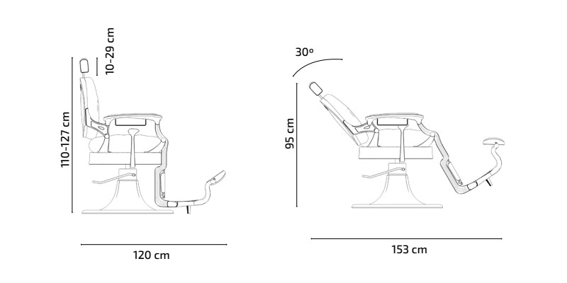Fauteuil barbier avec dossier capitonné en simili-cuir noir anti-feu et finitions en chromée. Pivote, monte et s'incline.