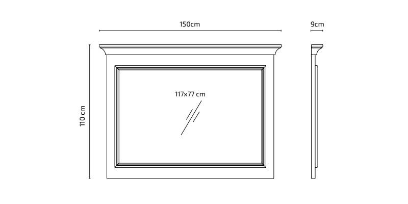 Grand miroir de salon de coiffure et barbier noir en bois avec moulures.